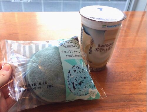 チョコミント味の大好きな旦那さんが、 ファミマで見かけてから週に何回も食べているという「チョコミントパンケーキ」美味しいから~と勧められ続け、 そんなにチョコミント系は好きじゃない私もついに食べてみることにしました。 ふたつ入って税込み138円…