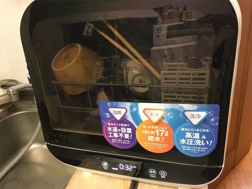 今年の2月、「高いけど、高いんやけど…」悩みに悩んで、えいやっ!と食洗機を買いました。買ってからほぼ毎日使っています。これは、大成功だったと思います。 水栓工事のいらないタンク式です。 性能自体はそこまでいいわけではありません。つめこみすぎる…