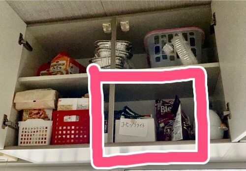 吊り戸棚 調理台の上にある吊り戸棚を開けると、なぜかそこにはコーヒーの替えが。 え、ここに!?もっとおく物あるやろ!? しょっちゅう使うものを入れる場所やろここは!とりあえず取り出す。 相変わらずいっぱい買ってるな… (母が飲まなくなったのに、こ…